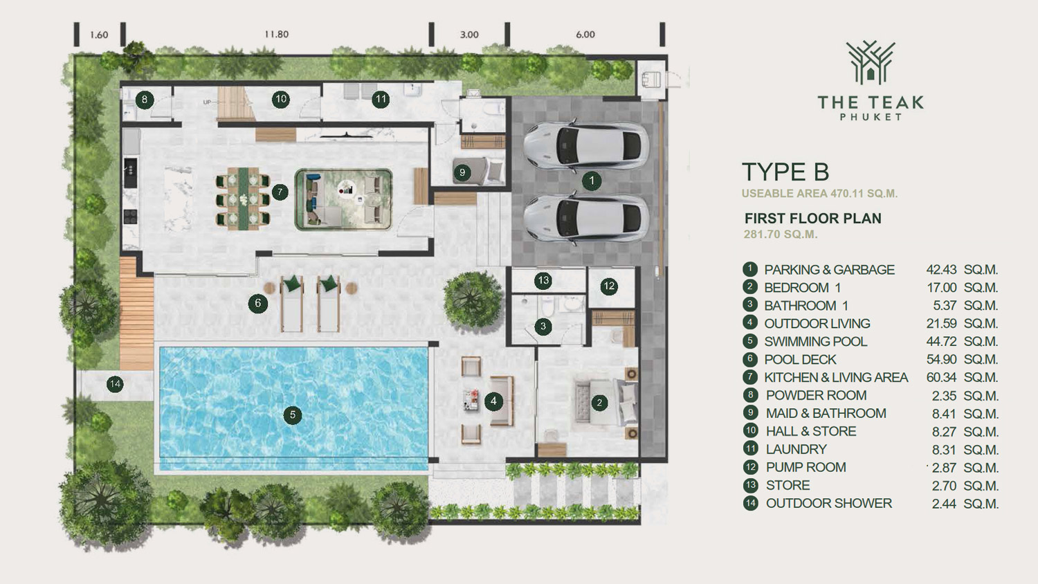 | Unit | Beds | Bath | Plot Size (sq.m.) | Build-up Area (sq.m.) | Useable Area (sq.m.) | Pool Size (m.) | Green Area (sq.m.) | Ownership (sq.m.) | Sale Price (THB) |